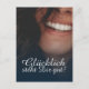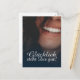 Kompliment Karte mit lachendem Frauengesicht und handschriftlichen Grüßen auf der Vorderseite der Karte. Restliche Flächen stehen zur freien Verfügung.