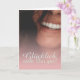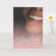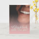 Kompliment Karte mit lachendem Frauengesicht und handschriftlichen Grüßen auf der Vorderseite der Karte. Restliche Flächen stehen zur freien Verfügung.