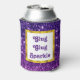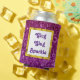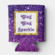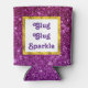 A can cooler with the funny saying: glug glug sparkle. Designed with a fancy and elegant design. The background composed of pink and purple sparkling glitter gemstones. Trendy and feminine vibe. A square frame with a faux-gold-foil border layered over top with the text inside.