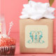 A vintage monogram with the letters GM in shades of teal, turquoise, blue and beige.