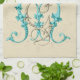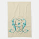 A vintage monogram with the letters GM in shades of teal, turquoise, blue and beige.