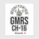 I monitor GMRS channel 16 sticker for overland vehicle communications with General Mobile Radio Service.