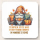 This design depicts a charming gnome sitting on the floor in front of a cozy sofa, next to a pumpkin, embodying an autumn theme.