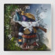 Gnome cat with sledgehammer and lamp goes to work square wall clock