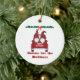 Gnome for the holidays with two gnomes in a truck wishing you a Merry Christmas created on a ceramic ornament.
