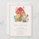 This cute and modern girl baby shower invitation features a gnome standing in front of his mushroom house with mushrooms on a cream background framed by a light pink border. The reverse side features a light pink background with mushroom patterns. Personalise it for your needs. You can find matching products at my store.