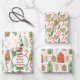 This cute Holiday wrapping paper set is all about the Christmas gnomes! One paper has a gnome wearing a red and green striped Santa hat, and holding a small red heart as a gift. Scattered about in the pattern are Christmas trees, holly leaves, berries, and candy canes. Your custom text is in matching green and red on a repeated white oval. The second paper has red framed green hearts in a pattern with red and white striped candy canes, green holly leaves, and red berries. The third paper has the little red and green houses that make up the gnome village. Festive and cute!