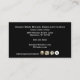Funny baker gnome with a macaron hat and holding a piece of cake, a black background. A fun bakery business card. Personalize this template with your information. Customize it further for more changes. Four social media symbols are on the back of the card. When customizing it, any of the images can be taken off and moved around.
