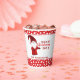 Create unique personalised Christmas paper cups for your family party with a cute design that features a Merry Christmas saying, cute gnome and text templates for the year and Family name. These white and red paper cups with polka dots is a lovely idea for the winter holidays.