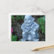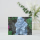 This post card features an original photo of a garden gnome sitting on a mushroom.