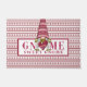 Get in the holiday spirit with this cute watercolor gnome Doormat featuring a Gnome wearing red and white fair isle in the centre of the phrase "gnome sweet gnome." The background is a red and white fair isle striped pattern.