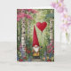 Gnome Valentine Card-Blank Inside-Customizable. Gnome Holding a Red Heart Balloon in the Forest.