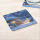 Gnome with a Lantern Outside a Snowy Stone Hut Square Paper Coaster