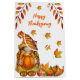 This design features the orange text "Happy Thanksgiving" with a girl gnome with pumpkins, apples, and autumn leaves. It is perfect for the Thanksgiving celebration.