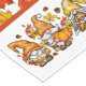 A Thanksgiving Table Runner Of Orange and Yellow Fall Leaves And Three Little Thanksgiving Gnomes