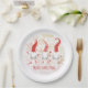 A festive whimsical gnomes Merry Christmas paper plates for your holiday table in red on white with a collection of soft ghosted images of Christmas boughs, pine cones, and pine needles in a round shape. Perfect for serving that Christmas pie or special yearly dessert and other treats with a cheerful festive presentation. See the full collection of matching products of this design at: https://www.zazzle.com/collections/gnomes_merry_christmas_celebration-119651994807957620