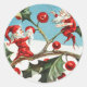 Gnomes painting holly berries in the snow classic round sticker