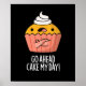 Go Ahead Cake My Day Funny Food Pun features a cute cupcake daring you to make his day! Perfect pun gift for family and friends who love cute cake puns.
