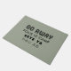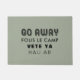 Funny Anti Welcome Mat. Custom colour background. Easily add additional text if desired. Say Go Away in four different languages - Fous le Camp (French), Vete Ya (Spanish), Hau Ab (German).