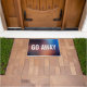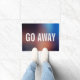 Funny not-particularly-welcoming doormat with GO AWAY written in big bold white letters across brown and blue.