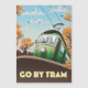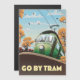 Go By Tram, vintage cartoon travel poster featuring an old vintage Tram.