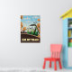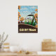 Go By Tram, vintage cartoon travel poster featuring an old vintage Tram.