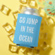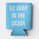 Vacation beach house or condo can cooler is the colour of the sea. With a blue background and extra bold typography "Go jump in the ocean" covers most of one side of the cooler cover. Get in the spirit of the weekend with this funny whimsical can holder.
