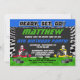 Celebrate your little racer’s birthday with this awesome go kart birthday invitation! This invitation features a colourful design with go karts, chequered flags, tyres and winning trophy. You can customise the invitation with your child’s name and age and all party details. This invitation is perfect for adding some fun and excitement to your go kart themed party! Designed by invitecentral.com