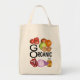 perfect bag for the farmers market has colourful fruits and veggies with the saying GO ORGANIC