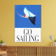 Go Sailing vintage 1980s style nautical travel poster of a sailing boat on the ocean.