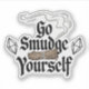 This funny sticker features the phrase "Go Smudge Yourself" with smudge sticks and crystals. Perfect for those who love spiritual cleansing and have a sense of humour. This durable vinyl sticker is great for laptops, water bottles, and more. Show off your love of self-care and good vibes with this unique design!