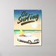 Go Surfing Travel poster, cartoon vacation beach surf poster print.