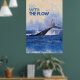 A whale tail emerges from the ocean, creating a striking splash against a backdrop of blue waves. The text 'Go with the Flow' appears in bold above the scene.