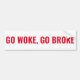 Go Woke, Go Broke texts printed on car bumper stickers.