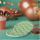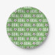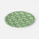 Paper plates with a pattern made using the word "GOAL" and soccer ball over a green background. Matches well with a football themed birthday party.