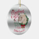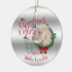 CUSTOMIZE THIS Christmas Ornament- Adorable Portrait painting of an Angora goat kid with Christmas greenery, holly and berries, a red bow and mistletoe - with ornate calligraphy text that reads: Christmas Wishes and Baby Goat Kisses all on a removable gold and silver backgrounds - remove backgrounds to reveal white or choose any colour background you like from the customise colour picker - Perfect for the goat lover in the family - won't they be surprised to see this unique Original Christmas goat on their Christmas Tree Christmas morning. A ©goatlady GetYerGoat™ original.