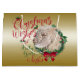 CUSTOMIZE THIS Christmas Gift Bag- Adorable Portrait painting of an Angora goat kid with Christmas greenery, holly and berries, a red bow and mistletoe - with ornate calligraphy text that reads: Christmas Wishes and Baby Goat Kisses all on a removable gold background - remove background to reveal white or choose any colour background you like from the customise colour picker - Perfect for the goat lover in the family - won't they be surprised to see this unique Original Christmas goat Christmas package on Christmas morning. A ©goatlady GetYerGoat™ original.