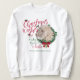 Goat Lovers Christmas Sweatshirt - Add Your Farm Name - Wear this Christmas morning! Adorable Portrait painting of an Angora goat kid with Christmas greenery, holly and berries, a red bow and mistletoe - with ornate calligraphy text that reads: Christmas Wishes and Baby Goat Kisses - Perfect for the goat lover in the family - A ©goatlady GetYerGoat™ original.