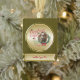 CUSTOMIZE THIS Christmas Ornament- Adorable Portrait painting of a Boer goat baby with Christmas greenery, holly and berries, a red bow and mistletoe - with ornate calligraphy text that reads: Christmas Wishes and Baby Goat Kisses all on a removable gold background - remove background to reveal white or choose any colour background you like from the customise colour picker - Perfect for the goat lover in the family - won't they be surprised to see this unique Original Christmas goat on their Christmas Tree Christmas morning. A ©goatlady GetYerGoat™ original.