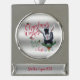 CUSTOMIZE THIS Christmas Ornament- Adorable Portrait painting of a Nigerian Dwarf baby goat with Christmas greenery, holly and berries, a red bow and mistletoe - with ornate calligraphy text that reads: Christmas Wishes and Baby Goat Kisses all on a removable silver background - remove background to reveal white or choose any colour background you like from the customise colour picker - Perfect for the goat lover in the family - won't they be surprised to see this unique Original Christmas goat on their Christmas Tree Christmas morning. A ©goatlady GetYerGoat™ original.