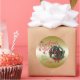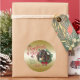 CUSTOMIZE THIS Christmas Gift Tag Sticker- Adorable Portrait painting of a Nubian doeling with Christmas greenery, holly and berries, a red bow and mistletoe - with ornate calligraphy text that reads: Christmas Wishes and Baby Goat Kisses all on a removable gold background - remove background to reveal white or choose any colour background you like from the customise colour picker - Perfect for the goat lover in the family - won't they be surprised to see this unique Original Christmas goat on their Christmas package Christmas morning. A ©goatlady GetYerGoat™ original.