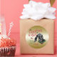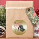 CUSTOMIZE THIS Christmas Gift Tag Sticker- Adorable Portrait painting of a Nubian baby goat with Christmas greenery, holly and berries, a red bow and mistletoe - with ornate calligraphy text that reads: Christmas Wishes and Baby Goat Kisses all on a removable gold background - remove background to reveal white or choose any colour background you like from the customise colour picker - Perfect for the goat lover in the family - won't they be surprised to see this unique Original Christmas goat on their Christmas package Christmas morning. A ©goatlady GetYerGoat™ original.