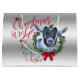 CUSTOMIZE THIS Christmas Gift Bag- Adorable Portrait painting of a Pygmy baby goat with Christmas greenery, holly and berries, a red bow and mistletoe - with ornate calligraphy text that reads: Christmas Wishes and Baby Goat Kisses all on a removable silver background - remove background to reveal white or choose any colour background you like from the customise colour picker - Perfect for the goat lover in the family - won't they be surprised to see this unique Original Christmas goat Christmas package on Christmas morning. A ©goatlady GetYerGoat™ original.