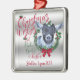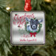 CUSTOMIZE THIS Christmas Ornament- Adorable Portrait painting of a Pygmy baby goat with Christmas greenery, holly and berries, a red bow and mistletoe - with ornate calligraphy text that reads: Christmas Wishes and Baby Goat Kisses all on a removable silver background - remove background to reveal white or choose any colour background you like from the customise colour picker - Perfect for the goat lover in the family - won't they be surprised to see this unique Original Christmas goat on their Christmas Tree Christmas morning. A ©goatlady GetYerGoat™ original.