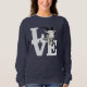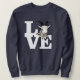 Showing this on a Dark Sweatshirt but can be placed on ANY dark shirt - Retro LOVE in White lettering and a horned goat's face used for the O In LOVE