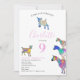 A collection of colourful, cute goats in vibrant pink, purple, blue, orange, yellow and aqua. A cute farm animals 9th birthday party invitation with baby goats and goats standing on goats. This fun party invitation is easy to personalised to create a unique party invitation suitable for children and adult goat lovers. Colourful pink themed psychedelic goat original illustrations by artist Catherine Sweetman