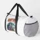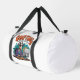 This white duffle bag features a humourous design of a goat in a suit and sunglasses, working at a computer, with "GOAT-TING" above and "THINGS DONE EVENTUALLY" below. This quirky design is perfect for those who appreciate a relaxed approach to productivity. Edit colour of the bag caps and body in the Design tool to your favored colours