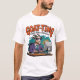 This white garment features a cartoon goat wearing sunglasses and a suit, sitting at a computer desk with a coffee cup. The text above reads "GOAT-TING" and below it says "THINGS DONE EVENTUALLY". It's a humourous design playing on the word "procrastinating" and the image of a business-like goat.