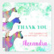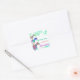 Goats farm animal birthday party thank you custom favour sticker. Unique colourful animal art goats standing on things with beautiful teal and blue watercolor splash background. A thank you sticker, ideal for a barnyard animal themed any age birthday party. Modern typography with east to customise templates with words ‘Thank You for celebrating my birthday with me’ with a custom child’s name. Original artwork by artist Catherine Sweetman