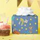 These cute goats are all ready for bedtime in their colourful pyjamas. The goats in their pj's are set against a blue background that's accented with yellow stars making this wrapping paper perfect for slumber party or sleeping themed gifts.